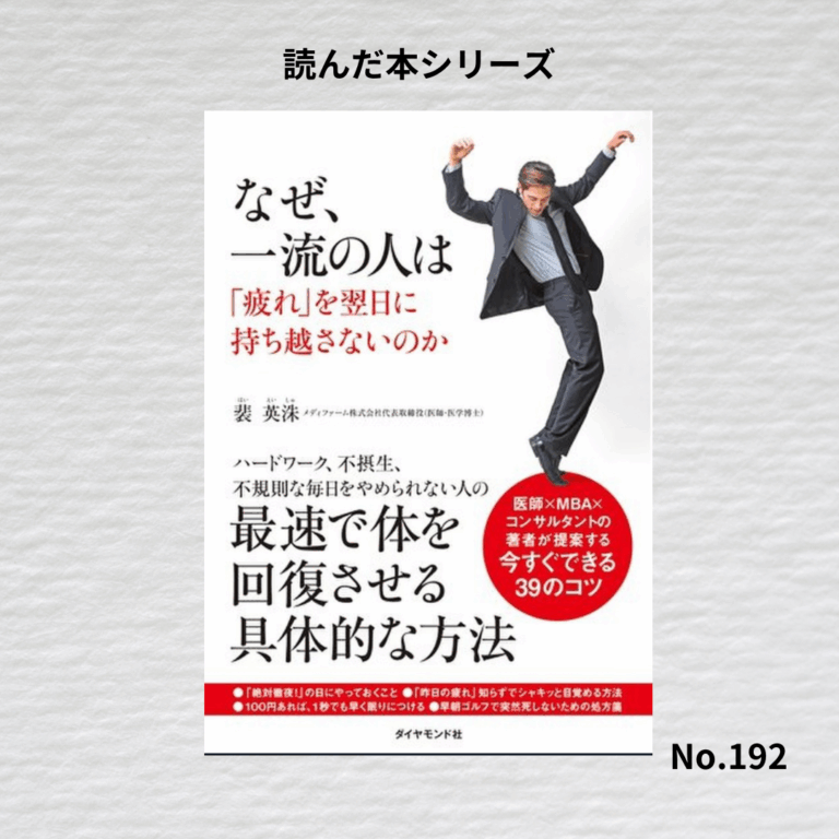 毎週月曜は『読んだ本シリーズ』 今週はこちら なぜ、一流の人は「疲れ」を翌日に持ち越さないのか 裴英洙 (著) ・休息を事前に組み込んでおく 断れず気づくとスケジュール帳が真っ黒にならないよう、 事前に休息を予定に組み込 […]